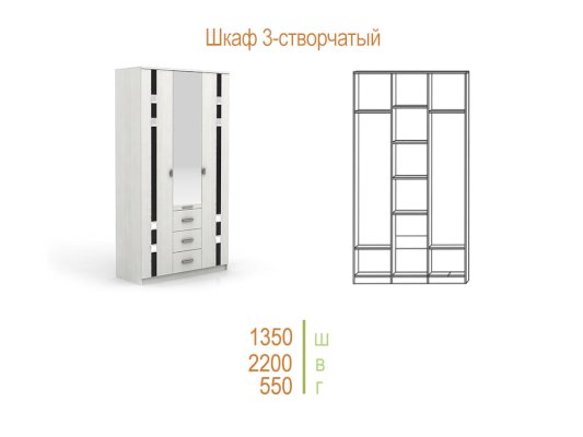 Шкаф трехстворчатый Николь (SM Мебель)