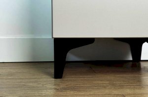 Корпус шкафа изготовлен из ЛДСП, что гарантирует прочность и долговечность. Фасад, покрытый МДФ в плёнке ПВХ, не только выглядит эстетично, но и защищает шкаф от повреждений. Особое внимание заслуживает фрезеровка фасадов, которая придаёт шкафу изысканный вид.