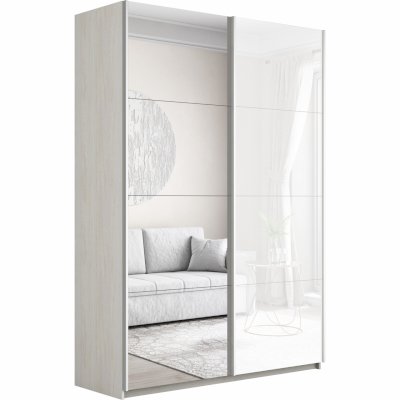 Шкаф-купе 2-х дверный Прайм Зеркало/Белое стекло 1400х2300х570 мм Ясень Анкор Светлый