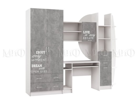Набор детской мебели со столом. Изготовлен с соблюдением всех необходимых требований к экологичности и функциональности. В этой модели детской модульной мебели использована крепкая и надежная фурнитура.